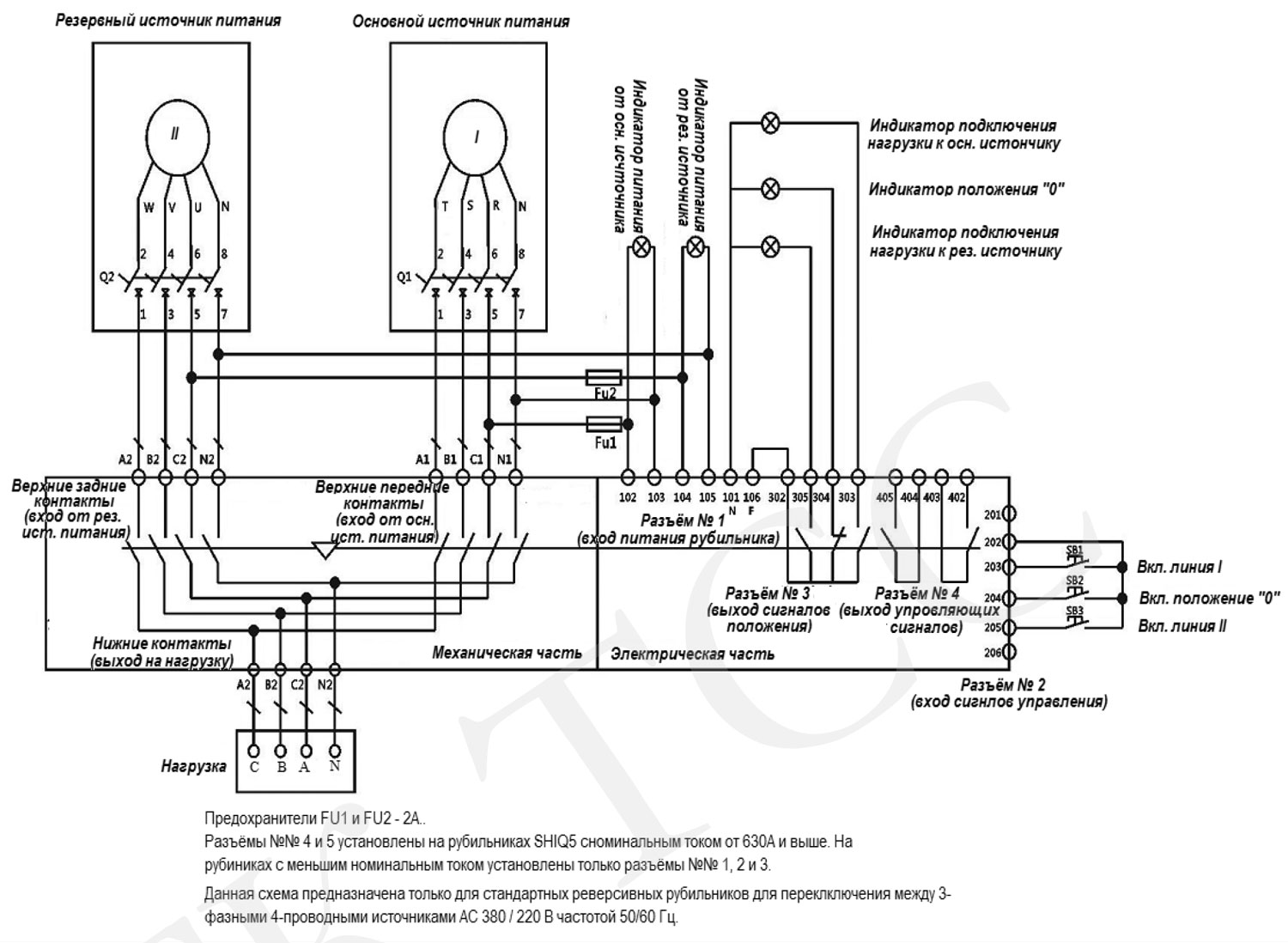 ТИПОВАЯ СХЕМА СОЕДИНЕНИЙ РЕВЕРСИВНОГО РУБИЛЬНИКА