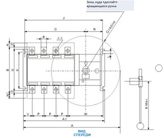 РАЗМЕРЫ РЕВЕРСИВНОГО РУБИЛЬНИКА TSS SHIQ5 1000А